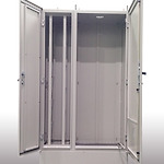 이 제품은 중동지역에서 사용할 제품으로, 태양에 노출되어 외부의 열로인하여 판넬 내부의 온도 상승을 막아주는 역활을 하는 주문형 판넬입니다. 지붕상부에 단열재를 사용하였으며, 전, 후, 좌, 후면에 이중판을 더해 각종 기후변화에도견딜 수 있게 하였으며, 고급형 핸들과 힌지 사용으로 매우 견고합니다. 도어에 가스켓포밍 부분과 바디의 절곡된 부분이 완벽하게 접합되어완벽한 방수, 방진을 효과를 실현합니다. 중동지역의 기후변화 태양열, 모래, 먼지, 바람, 물 으로부터 제품을 완벽하게 보호하여,안전하게 사용할 수 있습니다.